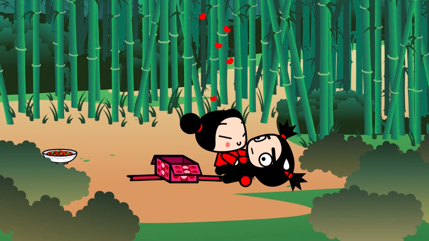 Pucca é doce, determinada e persistente, enquanto Garu, o ninja silencioso, vive tentando escapar das investidas dela. A dinâmica entre os dois cria um contraste divertido que prende o público.
