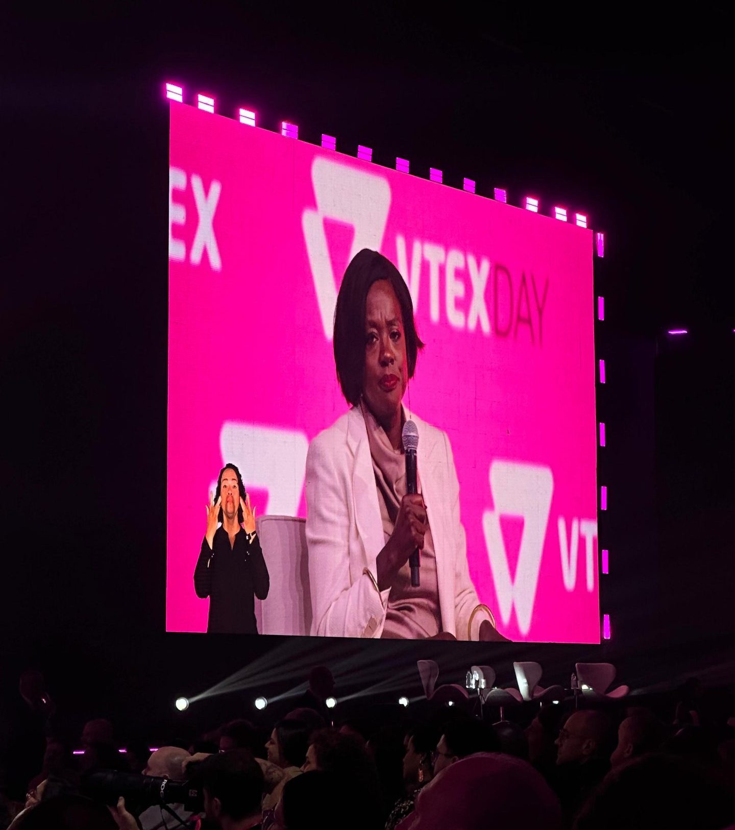 Após dois dias de mais de 20 horas de conteúdos ao vivo, reflexões e painéis que amplificaram a visão sobre os negócios no digital commerce, do marketing, aplicações de IA e tantos outros temas, o VTEX DAY 2025 prestou homenagem à Viola Davis.