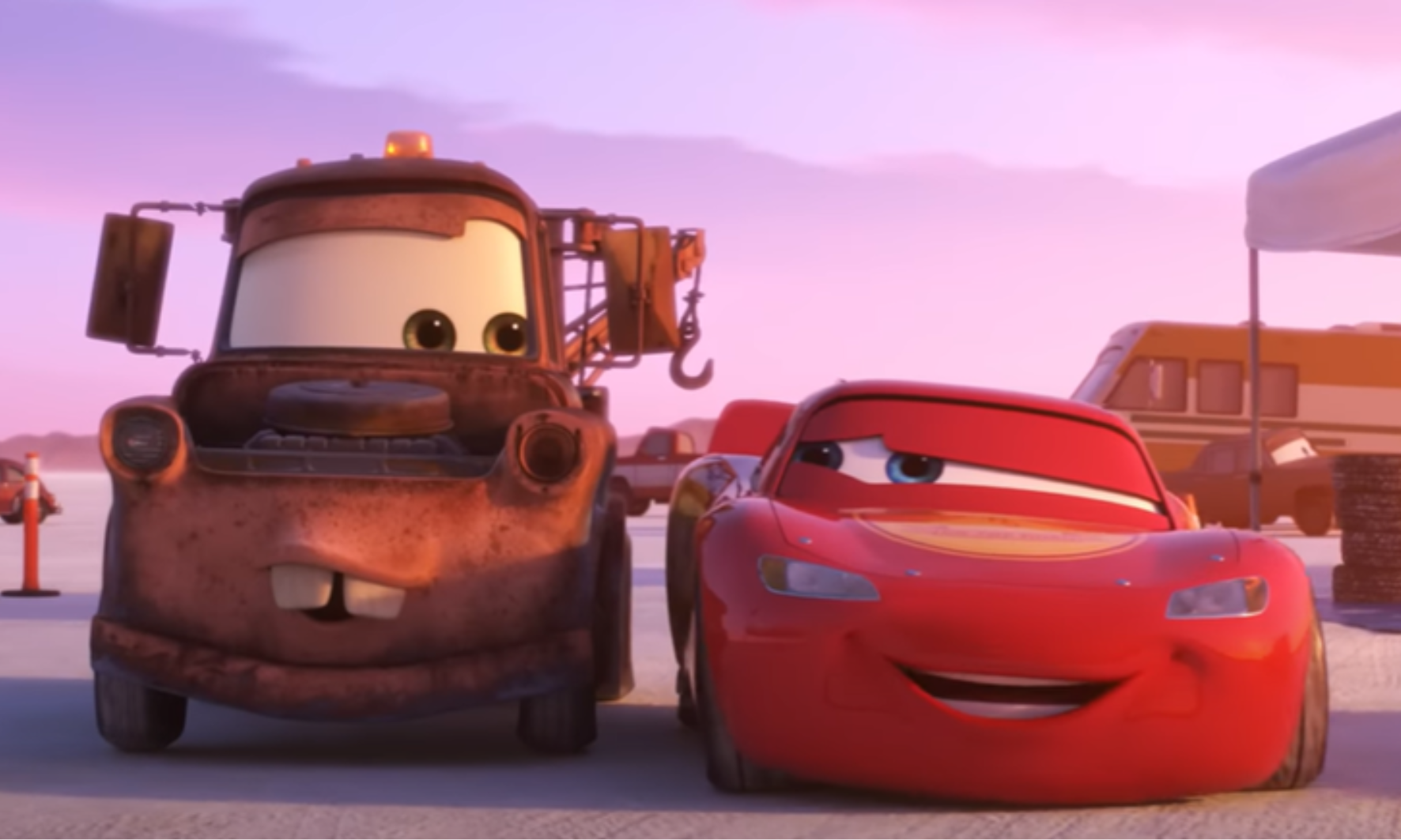 Um carro de corrida que vive em alta velocidade e um guincho que leva a vida sem pressa se conhecem em Radiator Springs, uma cidadezinha esquecida na Rota 66, no filme Carros (2006). A animação apresenta Relâmpago McQueen, um estreante nas corridas com ego nas alturas que quer vencer a Copa Pistão a qualquer custo. Porém, ao conhecer Mate, um guincho simpático e leal, descobre uma nova forma de ver o mundo, valorizando a amizade e os pequenos momentos. O filme originou duas sequências: Carros 2 (2011) e Carros 3 (2017), consolidando McQueen e Mate como uma das duplas mais icônicas da Pixar.