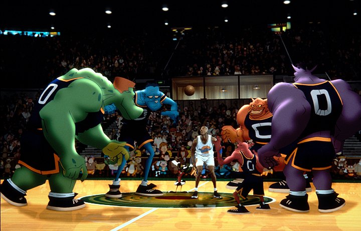 Pernalonga e seus amigos estão em apuros e recrutam Michael Jordan para um jogo de basquete contra monstros alienígenas.