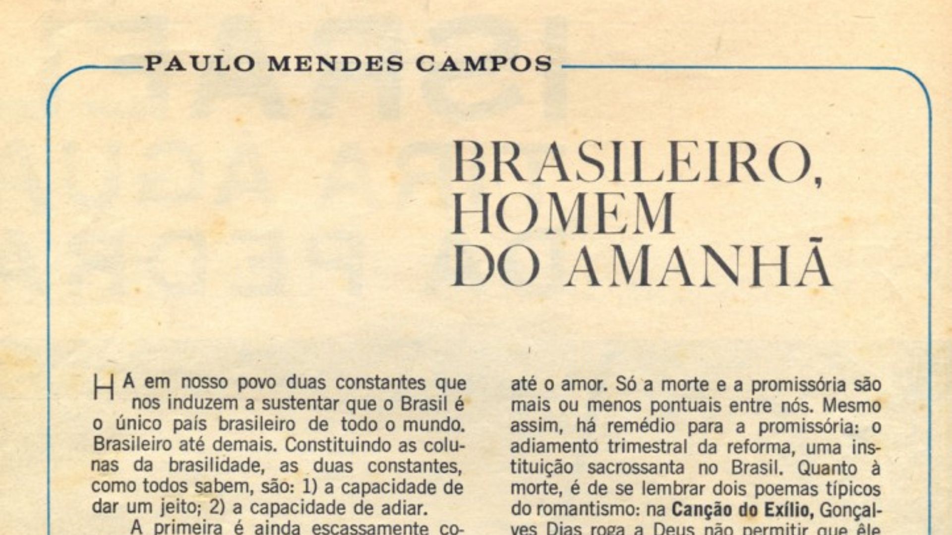 HW: Acho que nos apropriamos desse gênero da mesma forma que nos apropriamos do futebol. O futebol era inglês e foi trazido para cá pelo Charles Miller, mas nós demos a esse futebol britânico uma melhoria que ele não tinha na origem. Eu acho que o mesmo ocorreu com a crônica. Ela foi trazida da França em meados do século XIX e, aqui, ela foi ganhando uma graça brasileira através de grandes mestres, como Machado de Assis e, posteriormente, com João do Rio.
