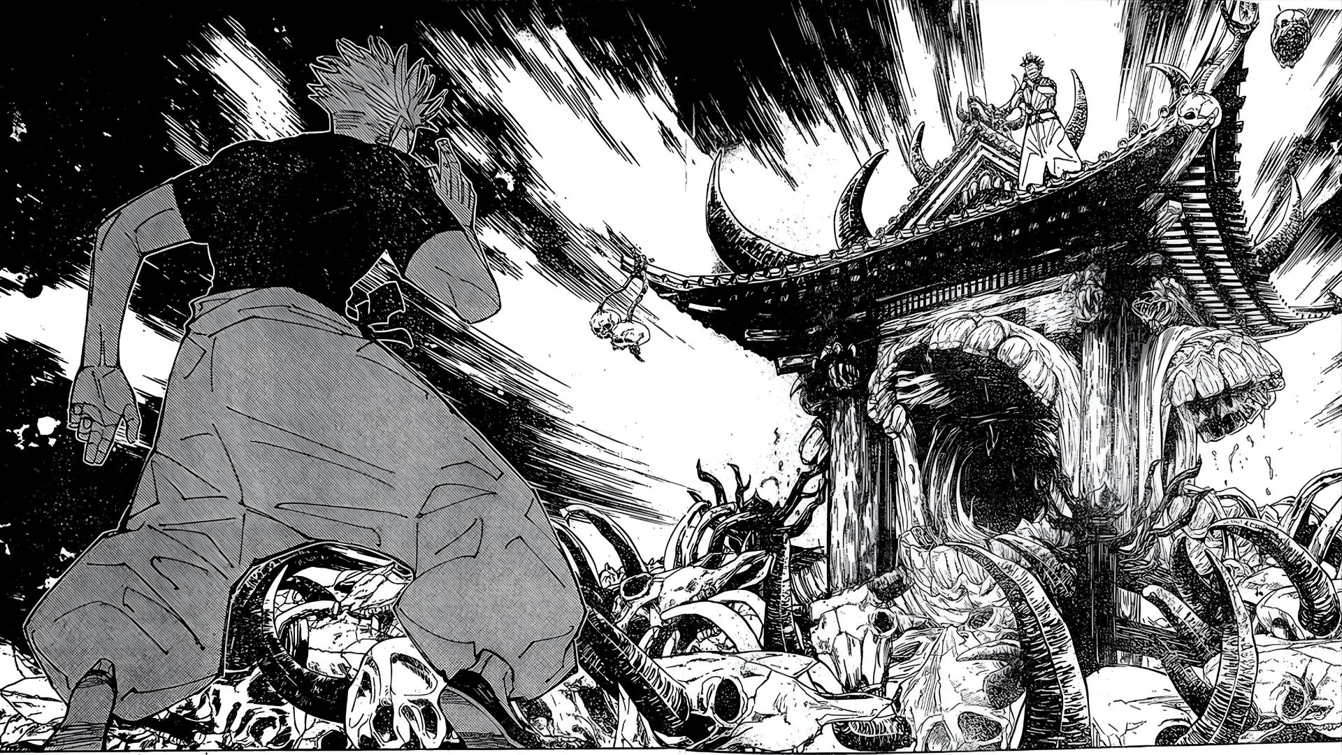 A recusa de Gege Akutami em atribuir traumas, histórias de sofrimento ou ideais distorcidos a Sukuna é justamente o que o torna tão desconcertante. Não há passado trágico, desejo de vingança ou tentativa de corrigir o mundo. Sua crueldade nasce de uma vontade própria, intacta e autossuficiente, que não pede explicações ao leitor e não se apoia em nenhum contexto redentor.