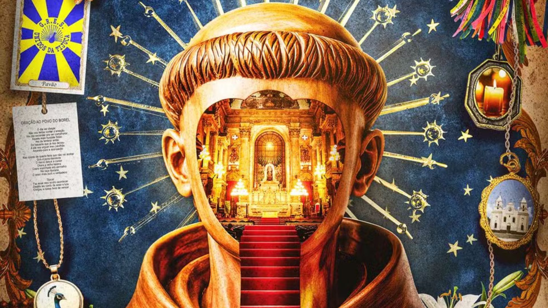 A obra nasceu de uma situação real: durante décadas, uma estátua de Santo Antônio permaneceu sem cabeça na cidade de Caridade, no Ceará – cenário que acabou se tornando símbolo local e ponto de interesse cultural. Esse imaginário deve ganhar novas camadas na avenida, com a escola apostando em símbolos como terços, simpatias, amuletos e orações para construir o desfile.