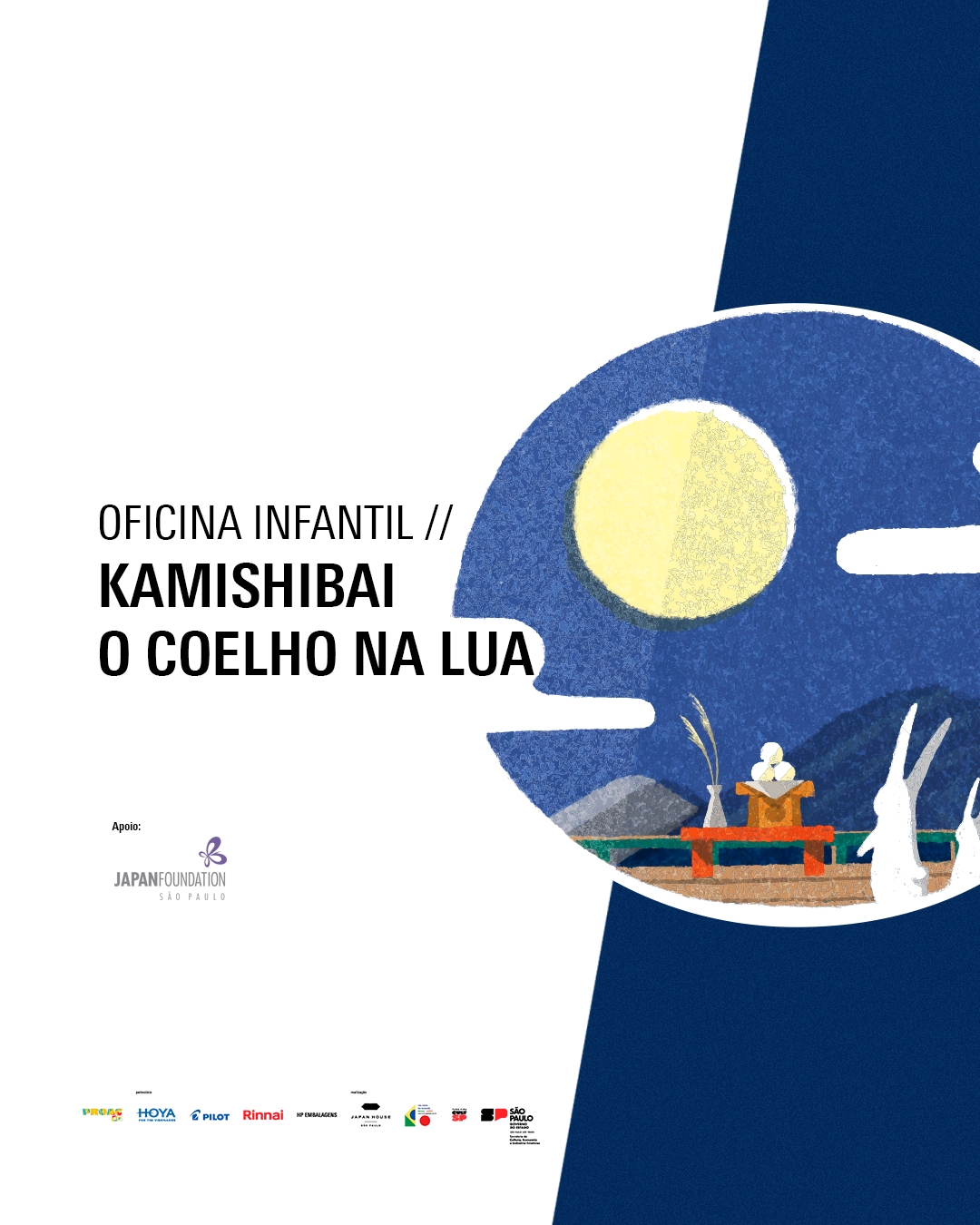 Nesta primeira edição, a Japan House São Paulo, instituição dedicada à cultura nipônica, oferece a oficina Kamishibai – O Coelho na Lua para crianças entre 4 e 12 anos. As vagas são limitadas e a participação é mediante retirada de senha na recepção 30 minutos antes da atividade.