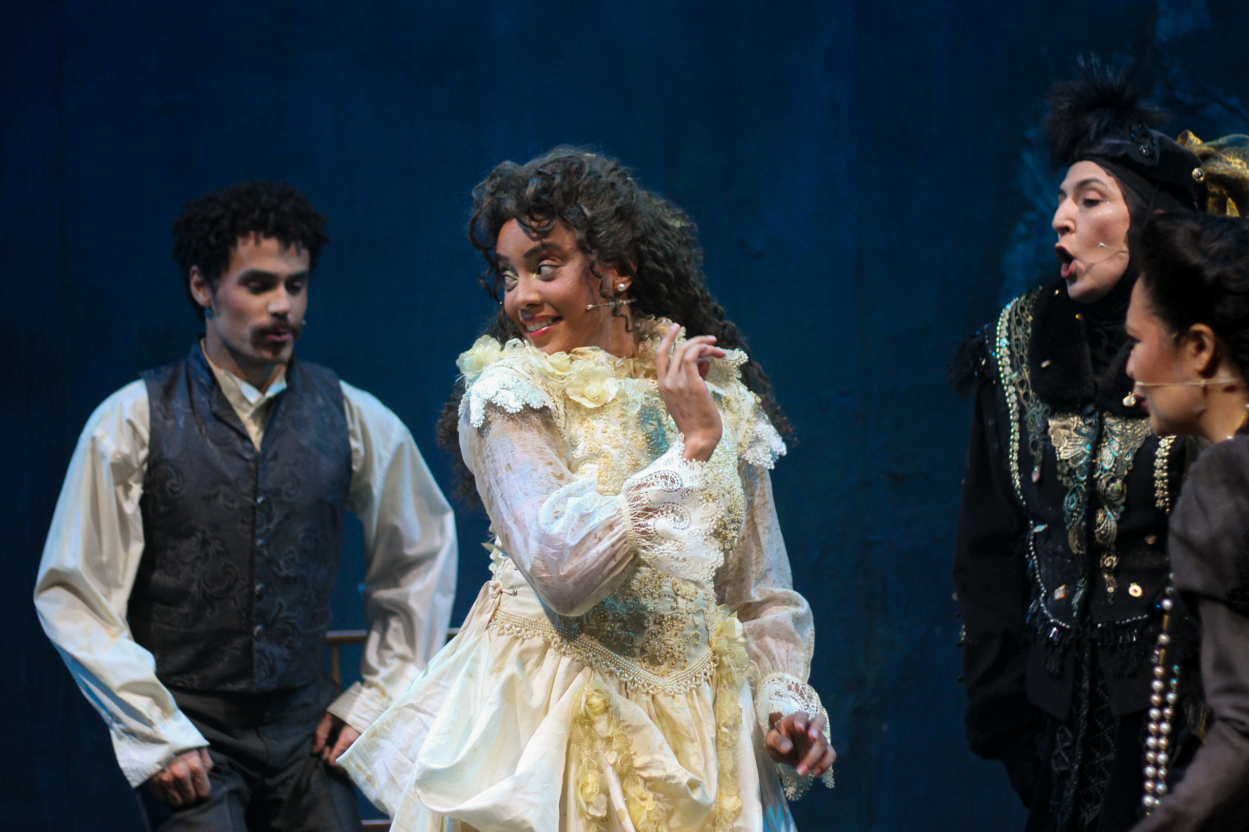 O elenco conta com Rodrigo Mercadante como Bentinho, Luci Saluzzi como a enigmática Capitu e Cleomácio Inácio como Escobar. Além dos protagonistas, temos Larissa Carneiro transitando entre Prima Justina e Sancha, Nábia Villela como Dona Glória, Eduardo Leão como Tio Cosme e Fábio Enriquez dá vida ao agregado José Dias.