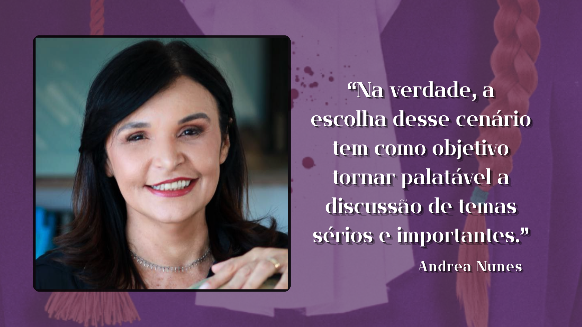 Andrea Nunes é romancista e procuradora de justiça. É autora dos romances policiais Corpos Hackeados (2021), que está com os direitos de adaptação vendidos para o cinema, e os premiados Jogo de Cena (2019) e A Corte Infiltrada (2017).