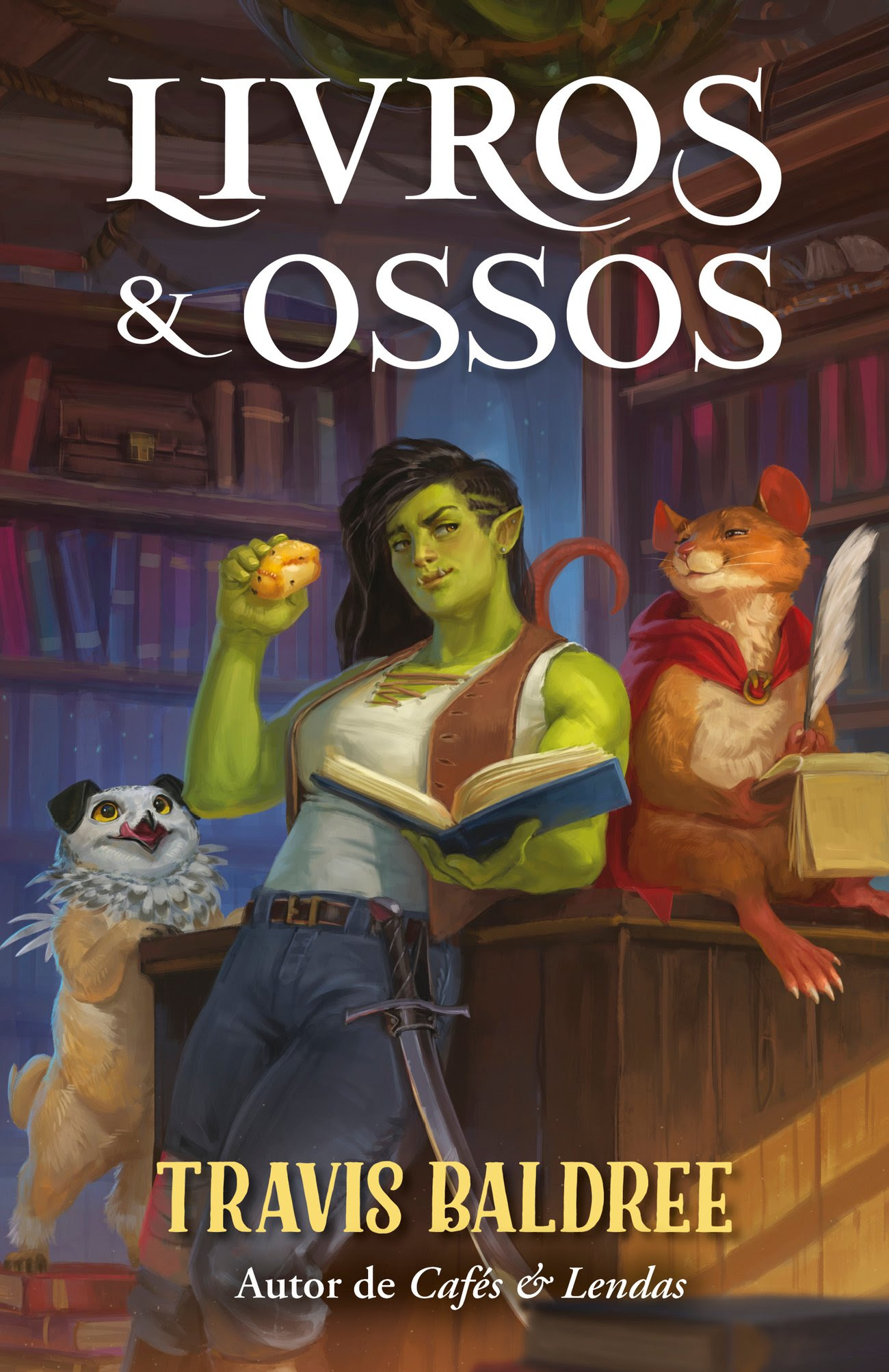 Antes de Viv abrir sua cafeteria em Cafés & Lendas (2024), ela vivia entre espadas e feridas, no grupo de mercenários Corvos de Rackam. Agora, em Livros & Ossos, Travis Baldree apresenta um episódio do passado da protagonista, quando ela é enviada à pacata cidade de Murk para se recuperar.